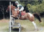 If you've been around horses long you've had a funny or an embarrassing moment. I was going through my old event videos last night and found one that always makes me smile I wish I could post it, but since I can't I'll just tell it. I had a green eventer at his first event. Everything was going great until we got to the water. Now he's always been sticky about the water, but I thought I had him over it. However my plan was to do just as I schooled it in the past. Since we just had to go through the water, no jump in or out, all he had to do was get through the flags. We came troting up to it and as we got into the water he slowed to a walk and asked to stretch down to see what we were going into, no problem he's done this before and had always kept going. Except this time he stopped, for a drink, right in the middle of the flags. I gave him an extra kick as he stopped, and what does he do? He backs up, continueing to drink, then goes on through like nothing had happened. I was laughing, the jump judges were laughing, and so were the spectators. All I said was "Wrangler, don't drink now!" Below is a pic of Wrangler later in the course at that very event.